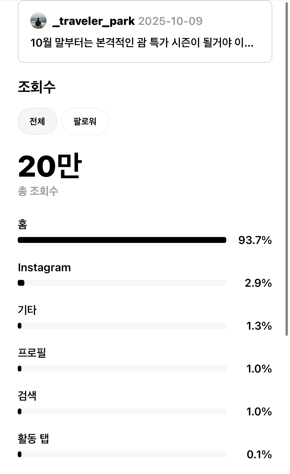 단순히 조회수가 많다고 해서 계정이 눈에 띄게 성장하는 건 아닌가 봐요.