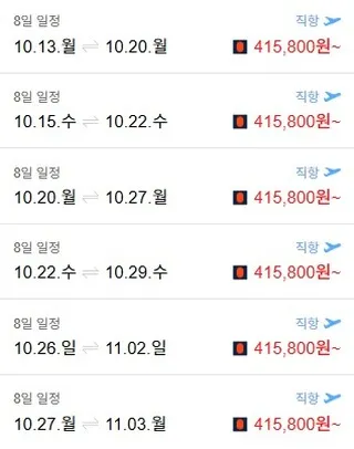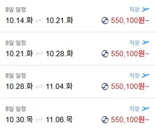 올 10월, 11월뿐만 아니라 내년 항공권도 좋은 가격에 나오고 있으니