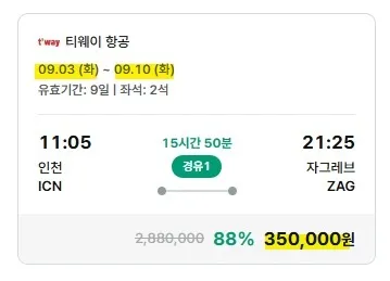 이번에는 크로아티아로 가는 항공권이 35만 원에 나왔다고 하네요!