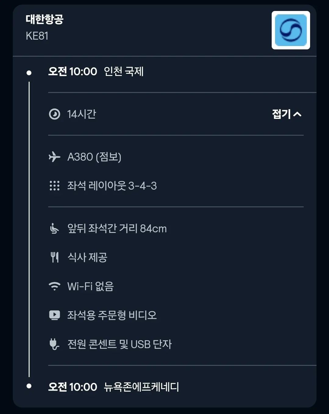 인천에서 뉴욕까지, 대한항공 vs 에어프레미아 (대략 86만원/65만원)