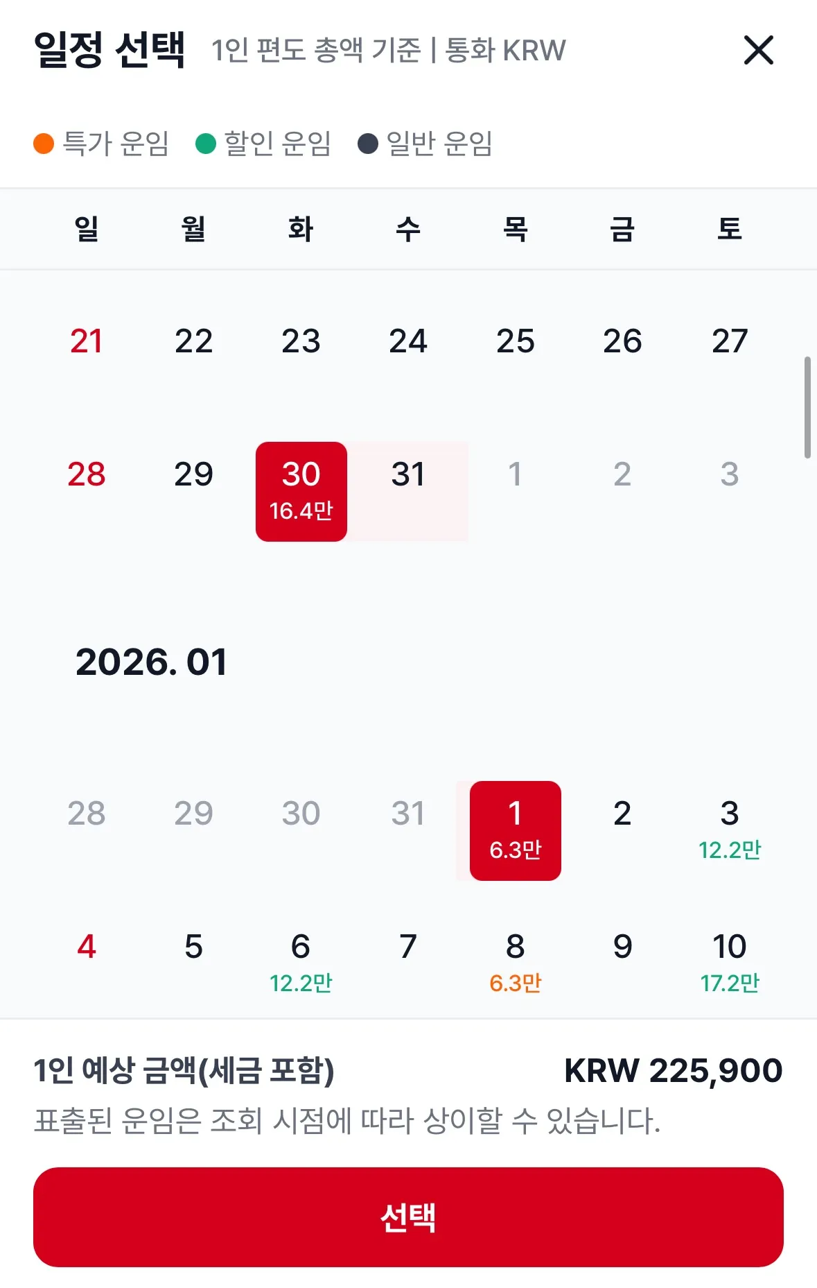12월 23일부터 25일까진 25만 원, 그리고 12월 30일부터 1월 1일까지는 22만 원으로 가실 수 있답니다.