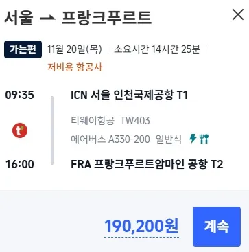 또 인천에서 프랑크푸르트로 가는 항공권은 얼마일까?