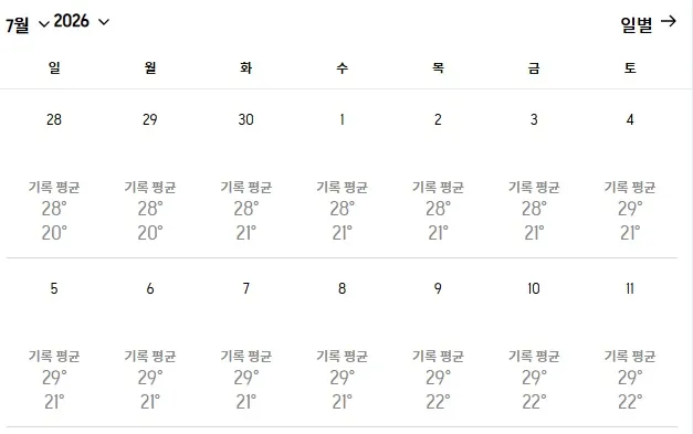 목요일부터 월요일까지, 7월 일정으로 여행을 계획해 보세요.