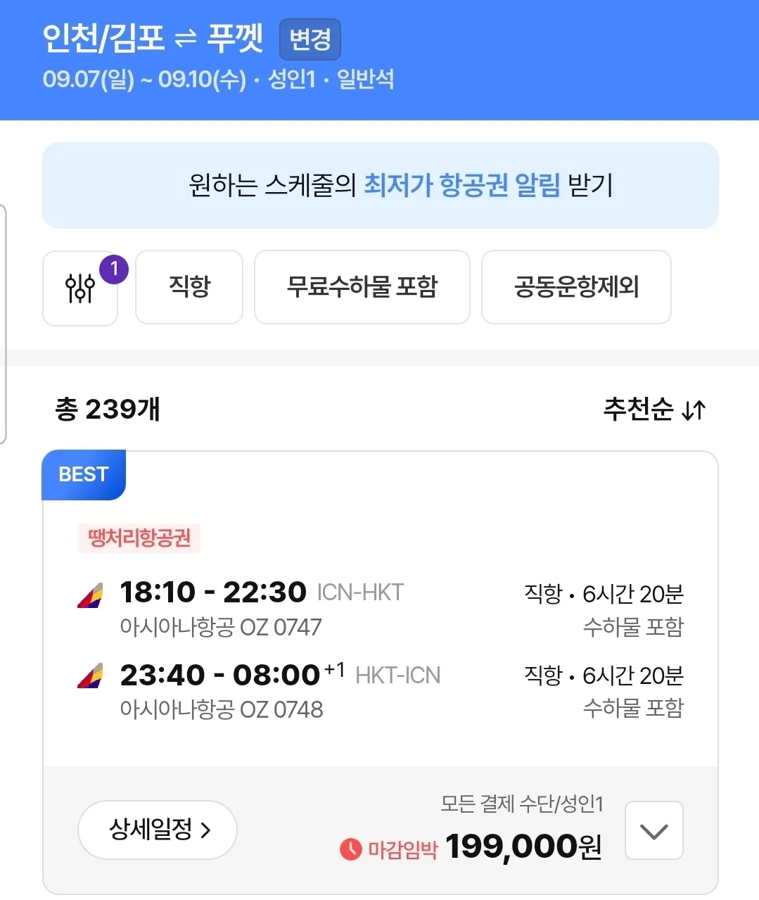 인천-푸켓, 인천-튀르키예 항공권 추천 (비용: 19.9만~41만 원)