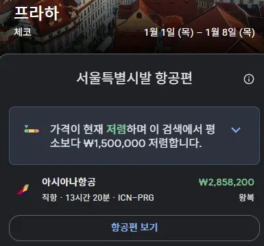 아시아나 항공의 비즈니스 특가로, 기존 400만원대였던 프라하 비즈니스석을 280만원대에 구매할 수 있답니다.