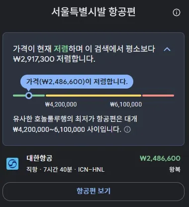 하와이 여행, 비즈니스 클래스 왕복 3~400만 원대!