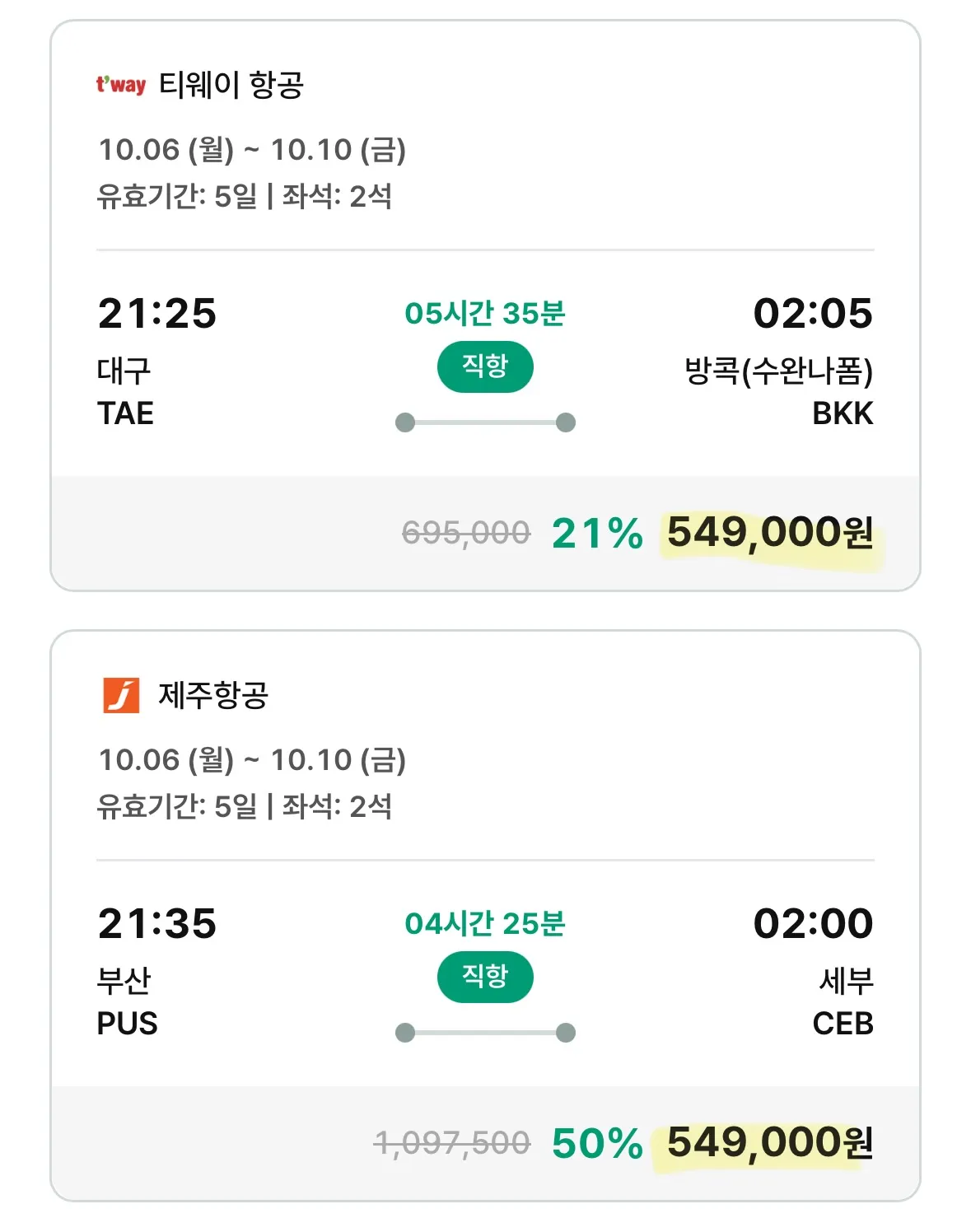 10월 6일(월)부터 10월 10일(금)까지 부산에서 세부로 55만 원!