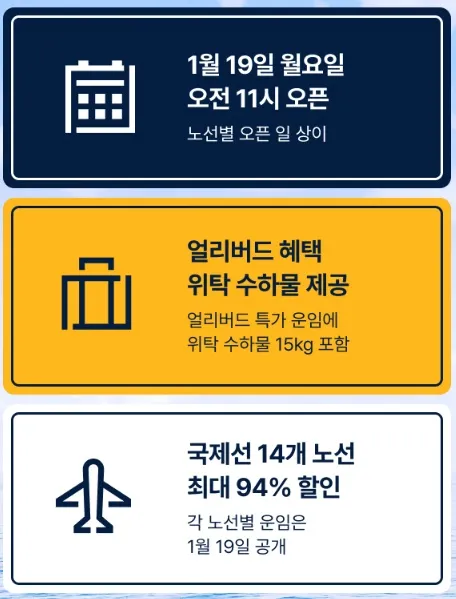 매주 월요일, 화요일, 수요일 오전 11시에 특가가 열리니까 가고 싶은 일정이나 지역이 있다면 꼭 확인해봐.