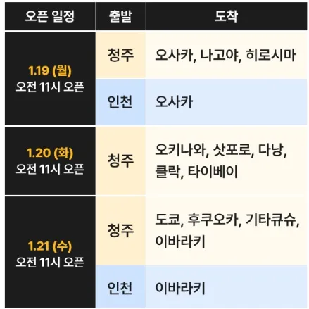 📅 1~3월 출발 최저가 항공권(일본)- 1/20(화) (인천/김해/청주 출발)