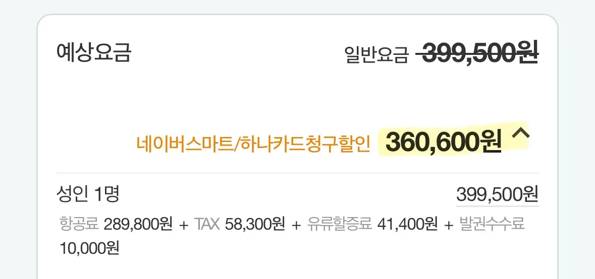 위탁수하물, 유류할증료, 그리고 세금 모두 포함되어 있어요.