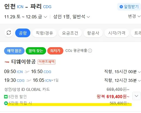 단거리 예매해도 1만원 할인과 1만원 적립 혜택 있습니다.