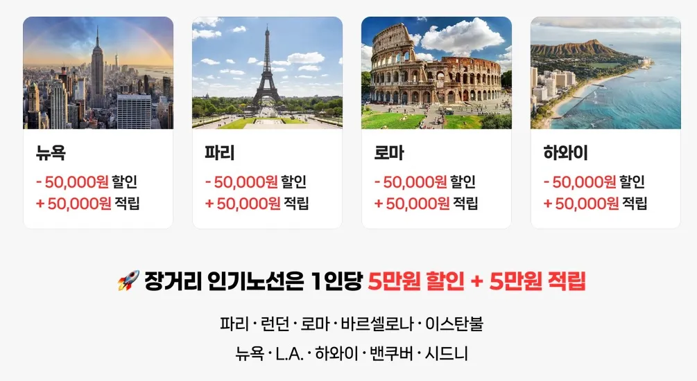 특히! 장거리 예매시 5만원 할인과 5만원 적립 혜택 있어요.