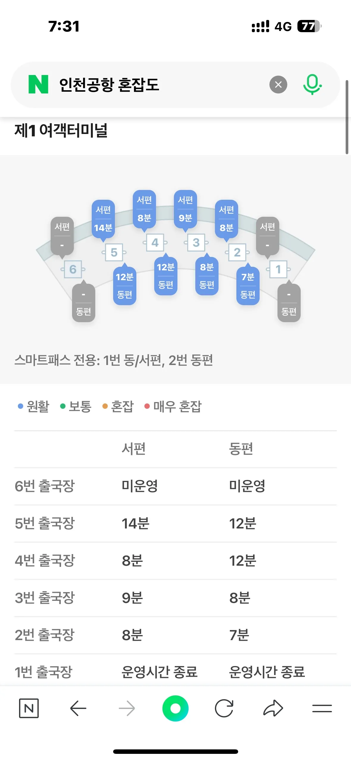 팁!) 네이버에 "인천공항 혼잡도" 검색해봐