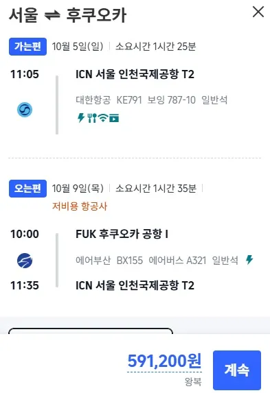 추석 연휴 동안 후쿠오카 여행을 계획하고 있다면, 10월 5일부터 10월 9일까지 다녀오면 좋을 것 같아요.
