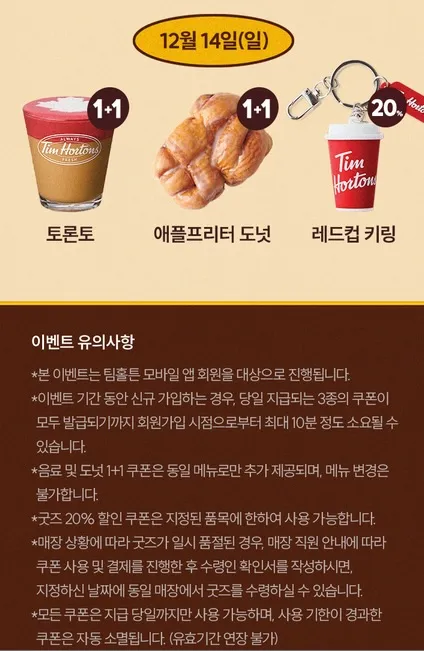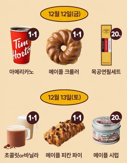 팀홀튼 1+1 행사 시작, 직장인들 놓치지 마세요!