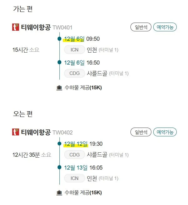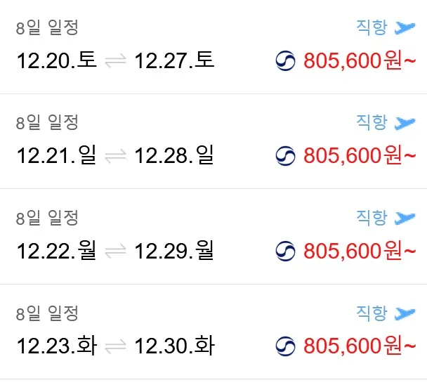 12월 파리로 가는 직항이 70만 원대예요. 크리스마스 기간 동안 뉴욕으로 직접 가는 표도 80만 원이면 살 수 있네요!
