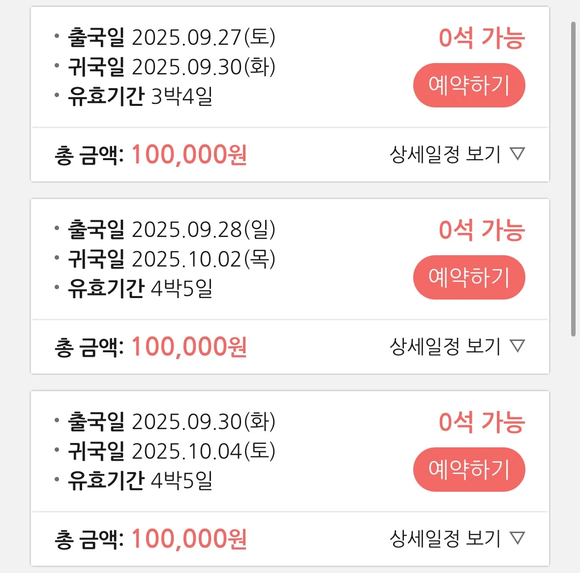 그래도 다른 일정은 여전히 저렴해서 가성비가 좋아요.