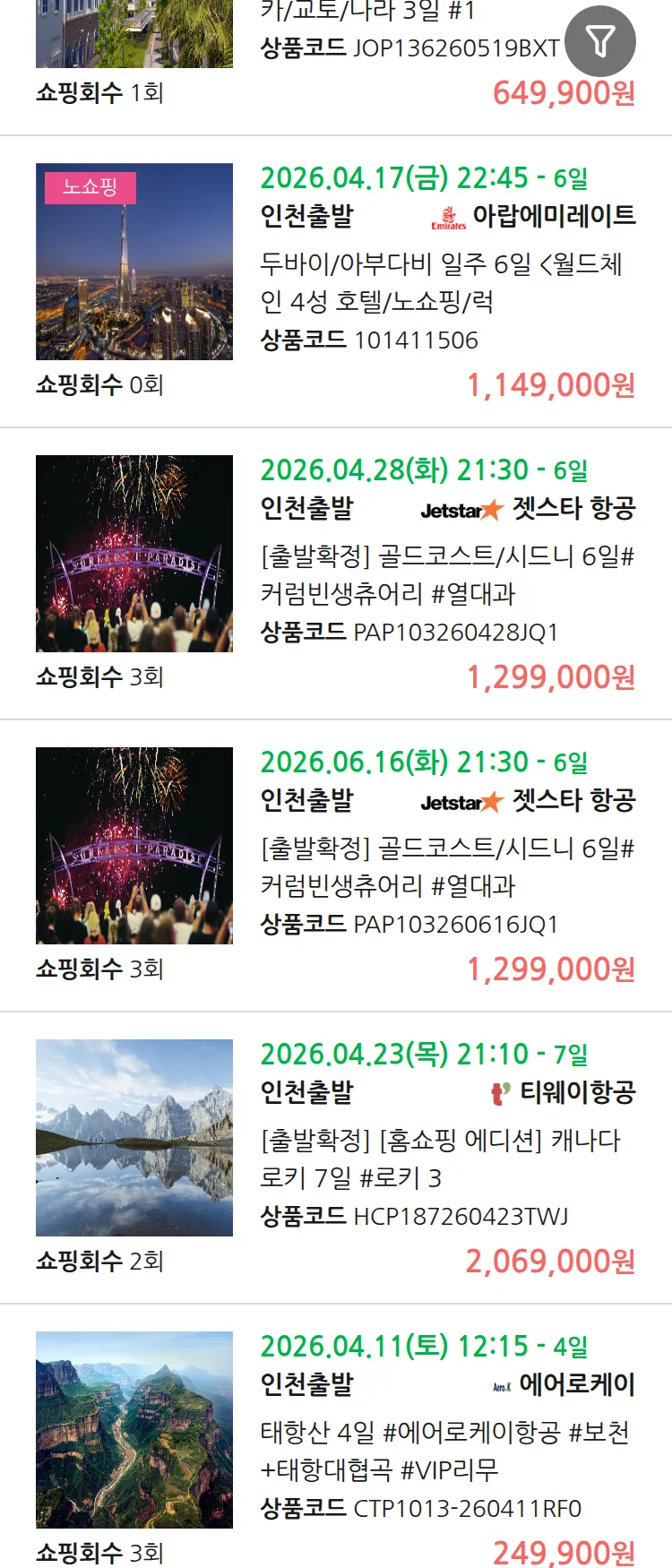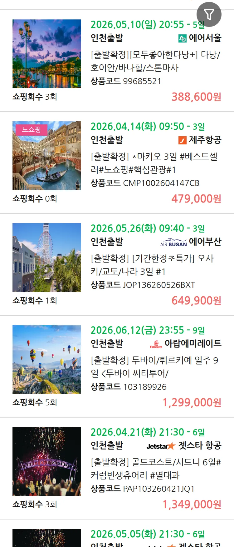 (3월 30일(월)) 땡처리 99.9% 확정 패키지