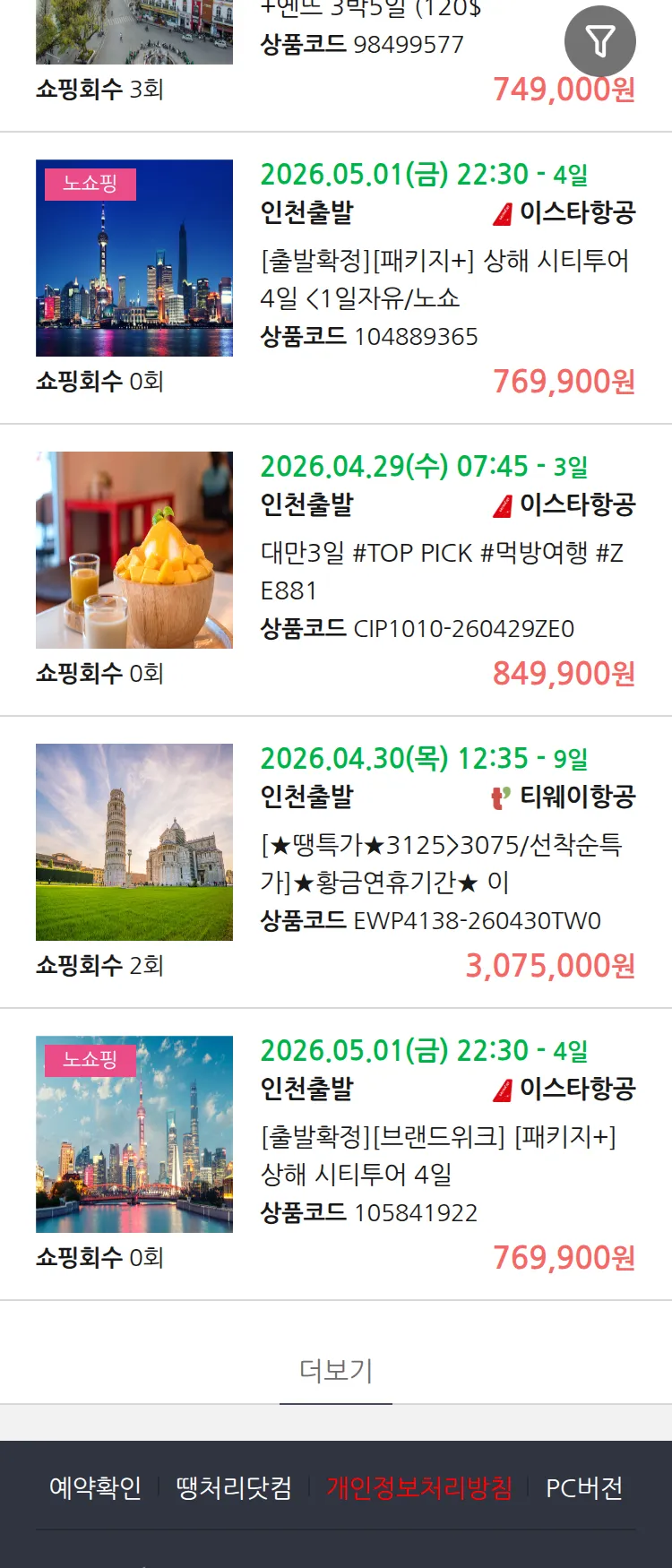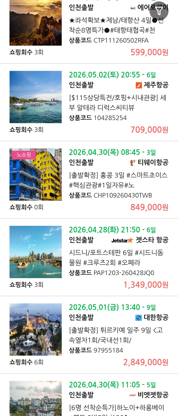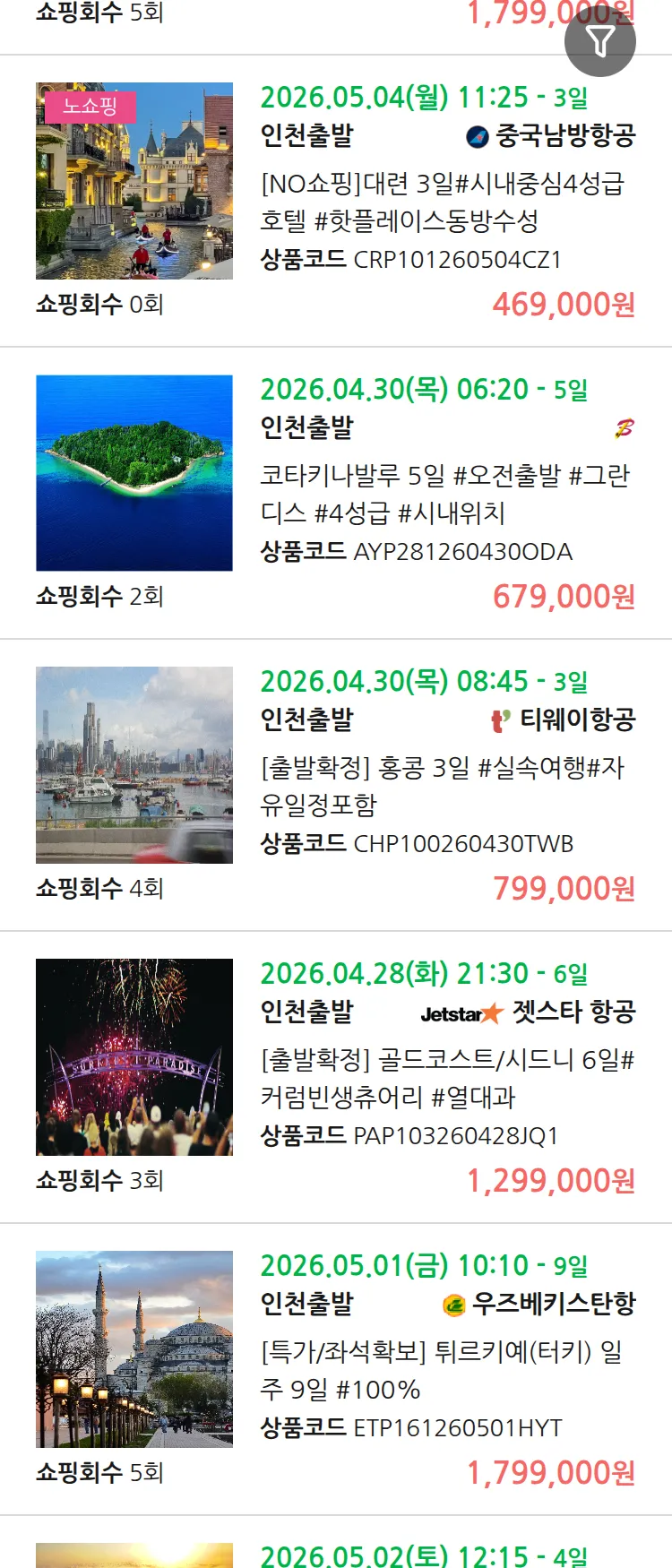 (3월 30일(월)) 땡처리 99.9% 확정 패키지