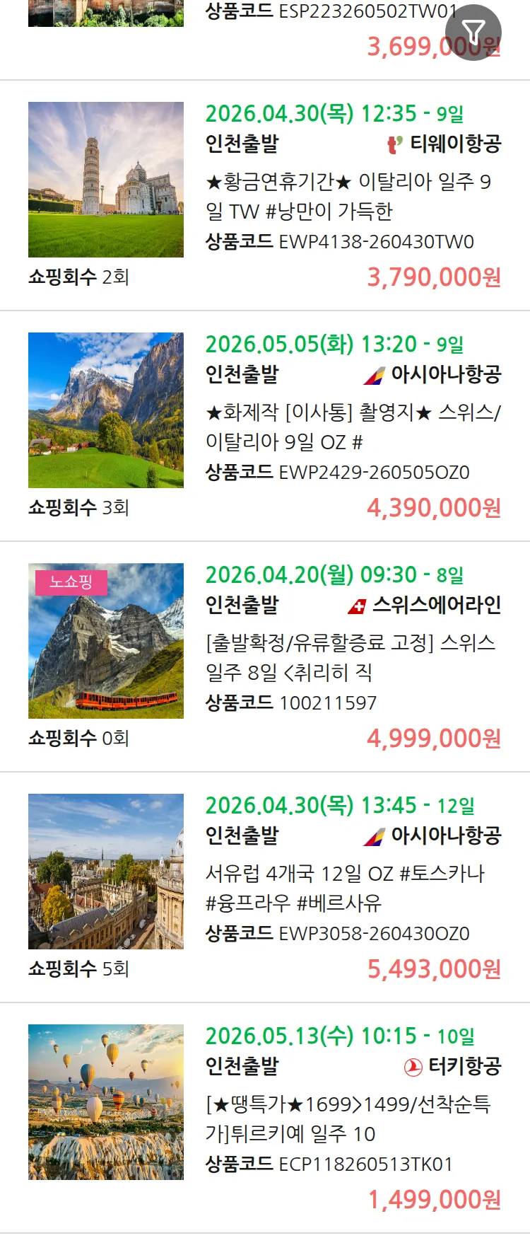 (4월 10일(금)) 땡처리 유럽 긴급 패키지