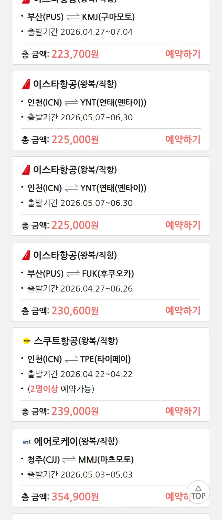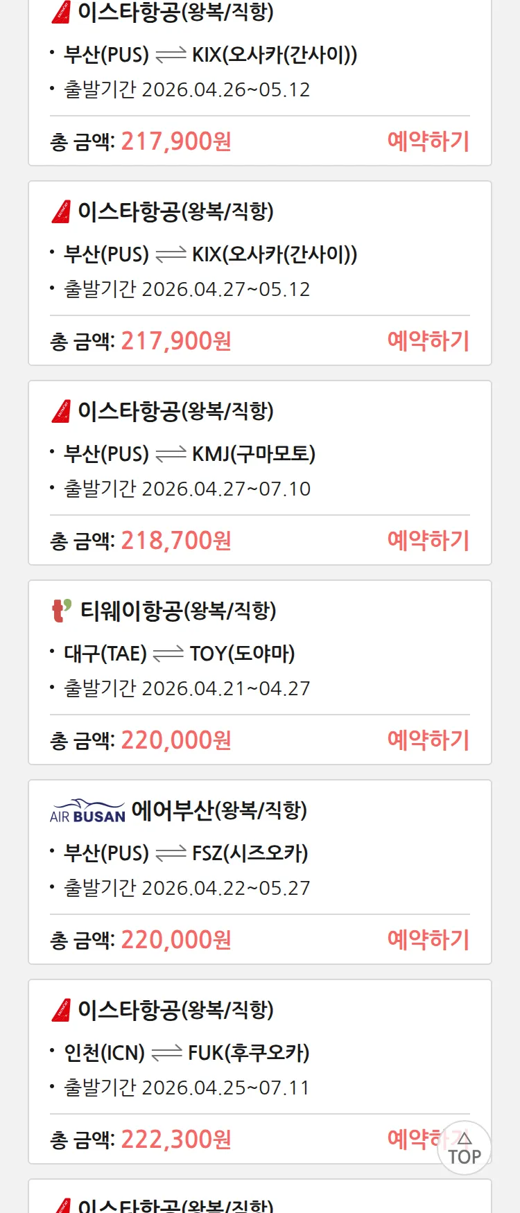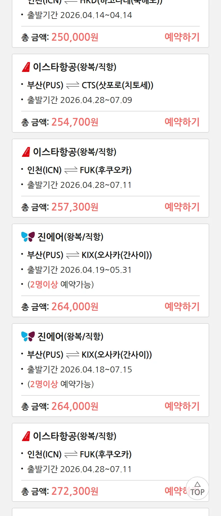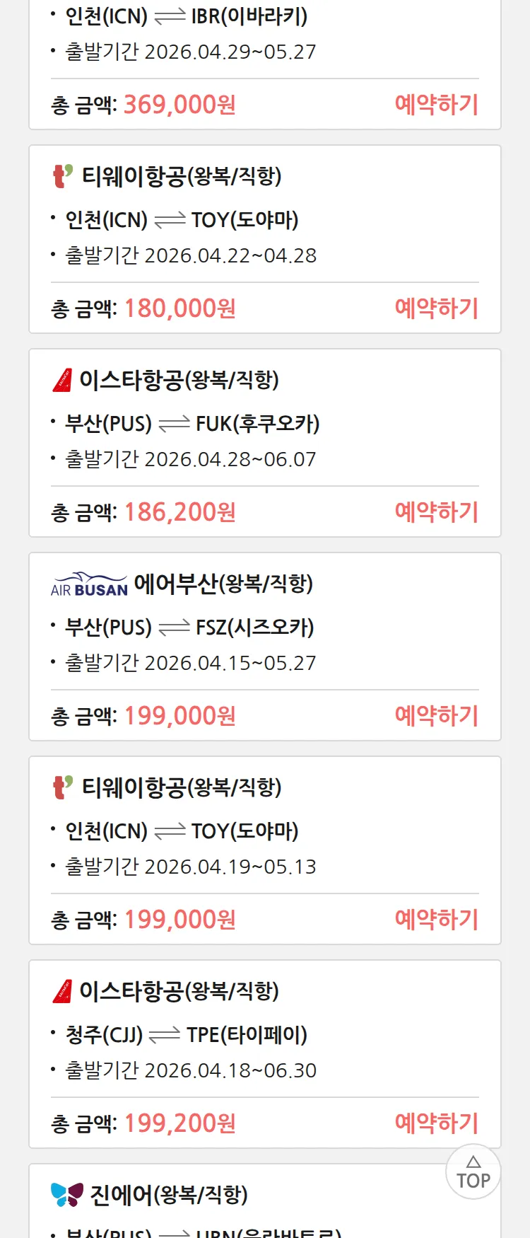 (4월 10일(금)) 땡처리 특가 항공권