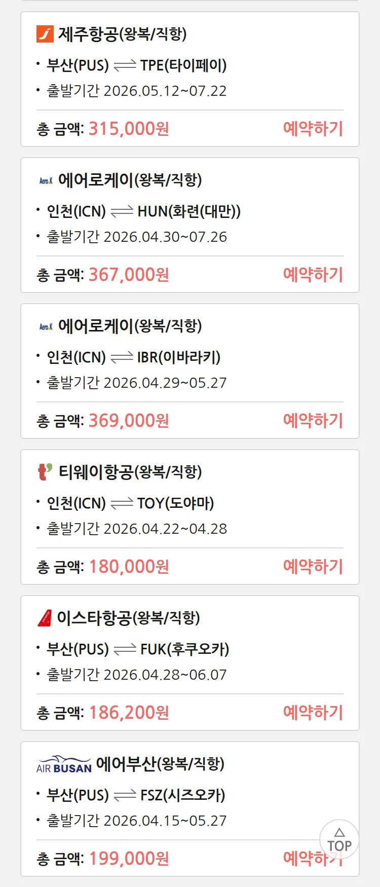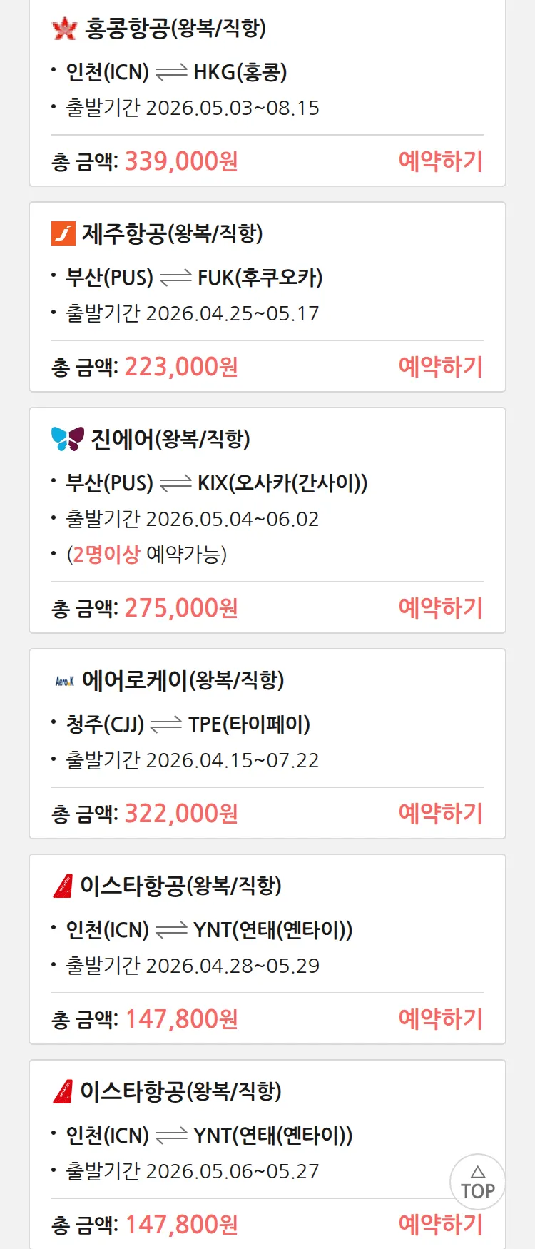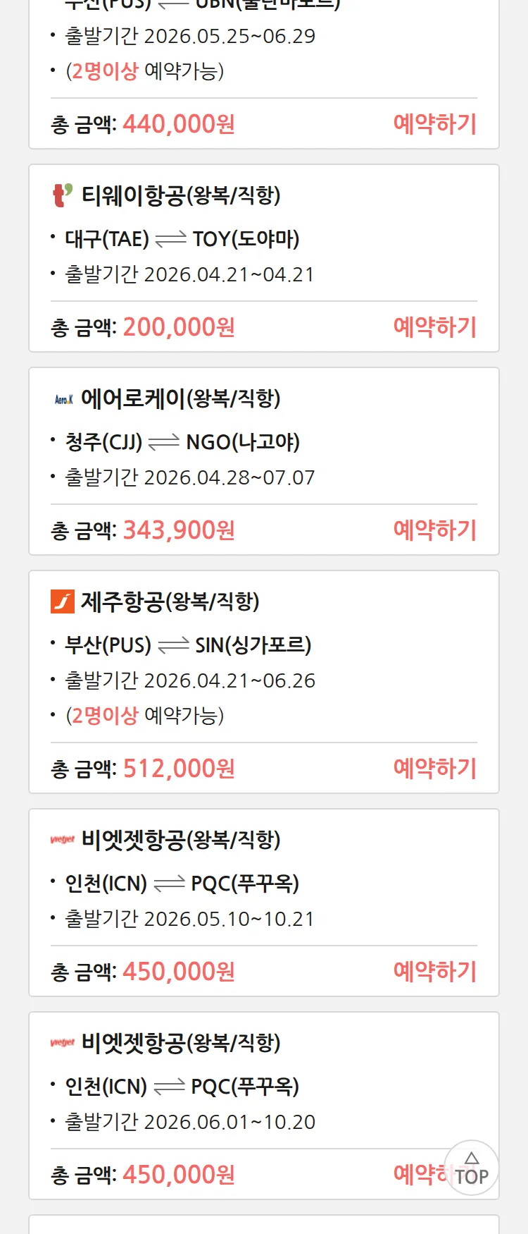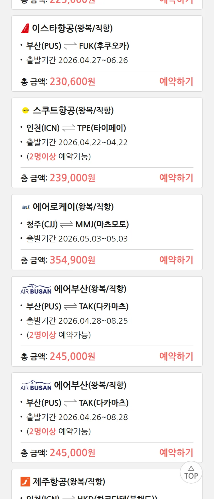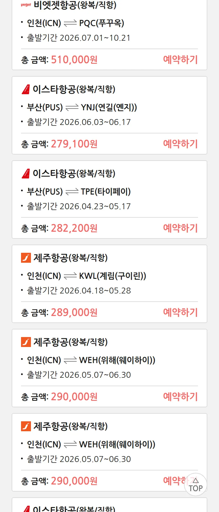 (4월 10일(금)) 땡처리 특가 항공권