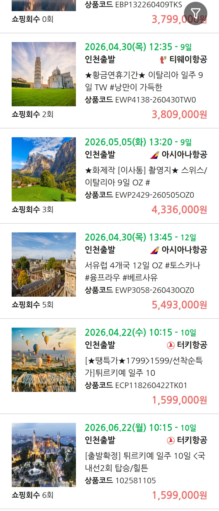 (4월2일(목)) 땡처리 유럽 긴급 패키지