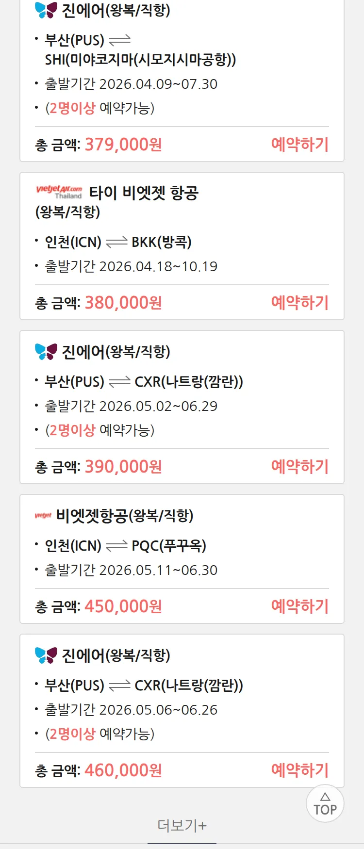 (4월2일(목)) 땡처리 99.9% 확정 패키지