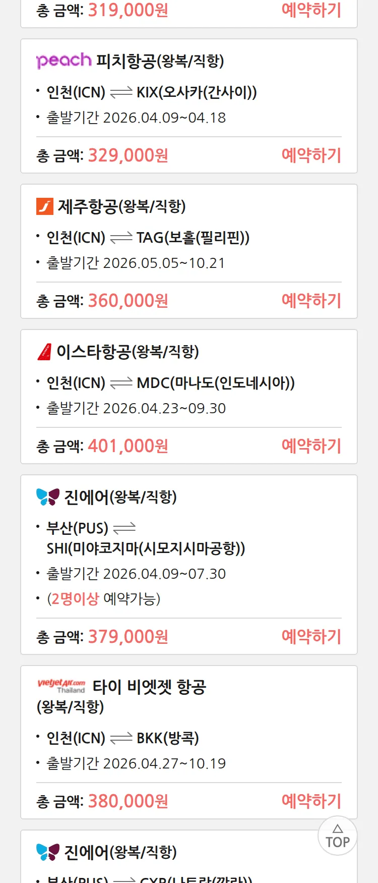 (4월3일(금)) 땡처리 특가 항공권