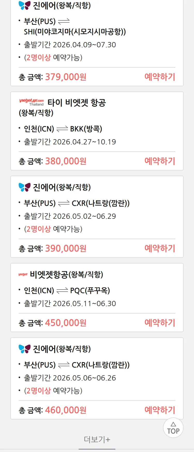 (4월2일(목)) 땡처리 특가 항공권