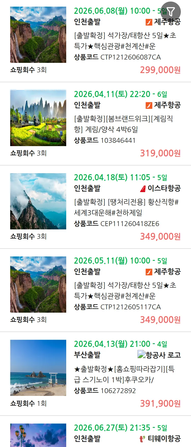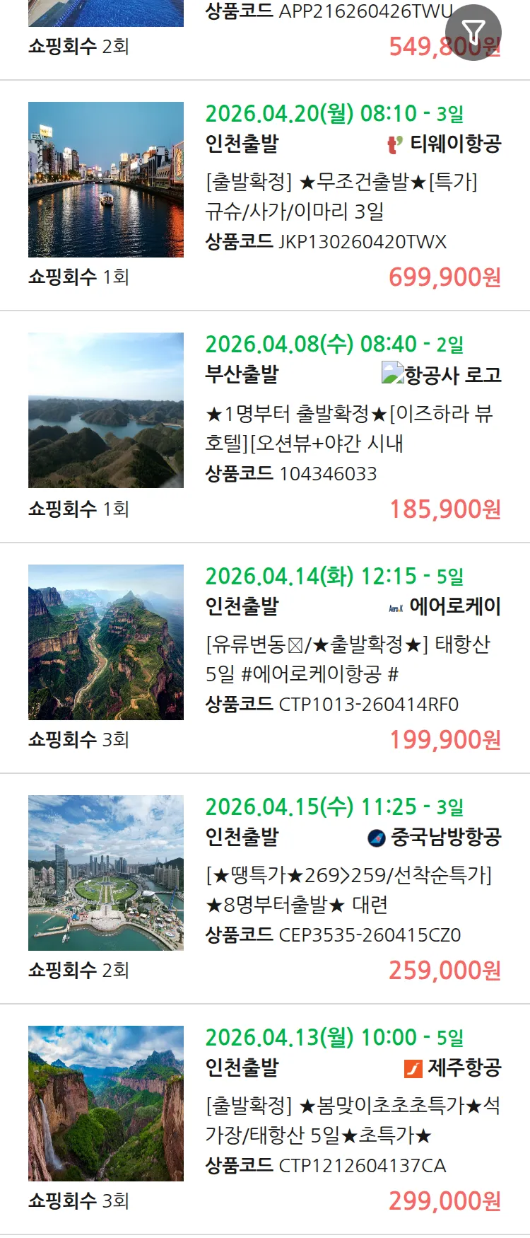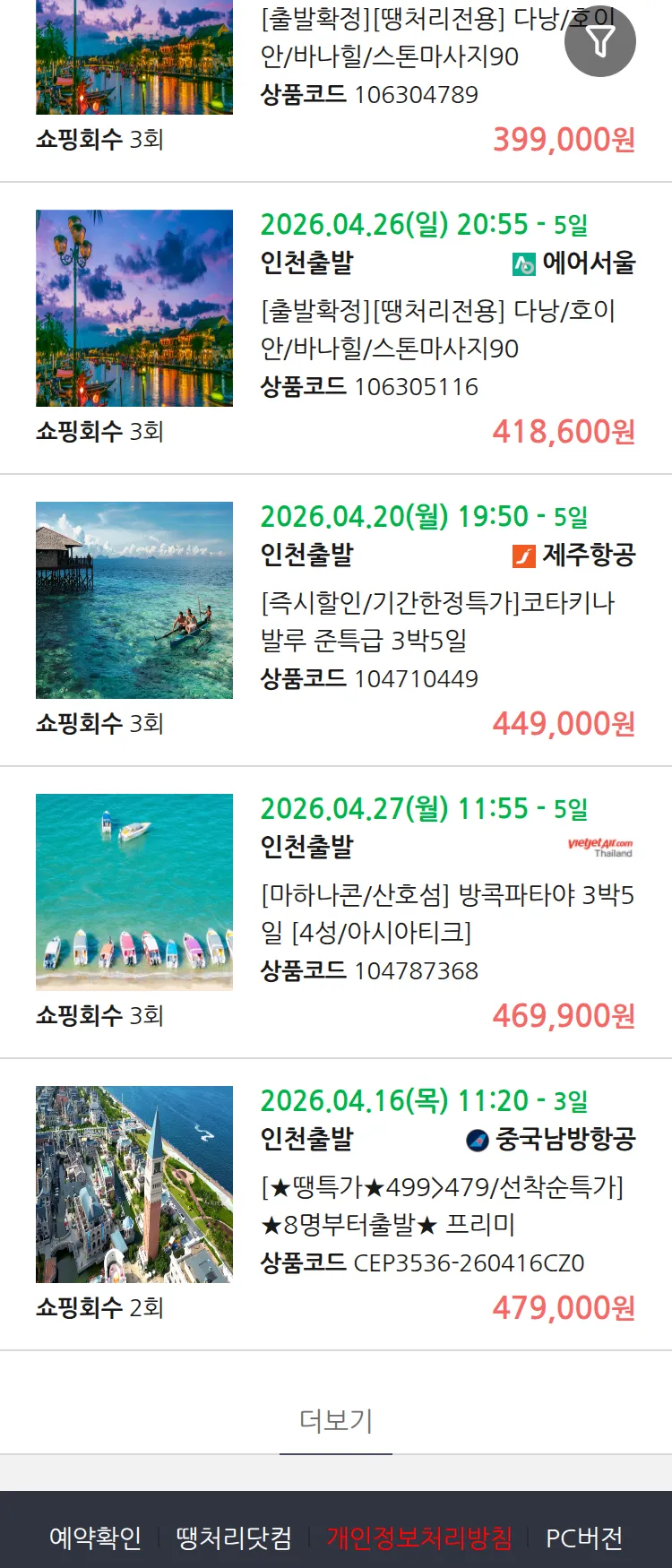 (4월6일(월)) 땡처리 99.9% 확정 패키지