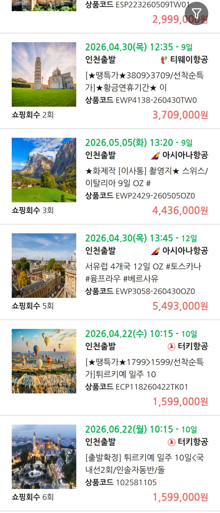 (4월6일(월)) 땡처리 유럽 긴급 패키지