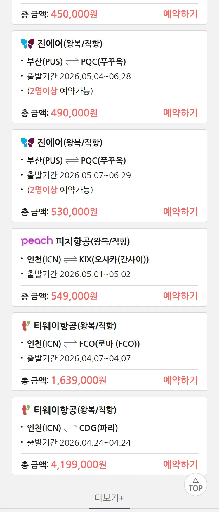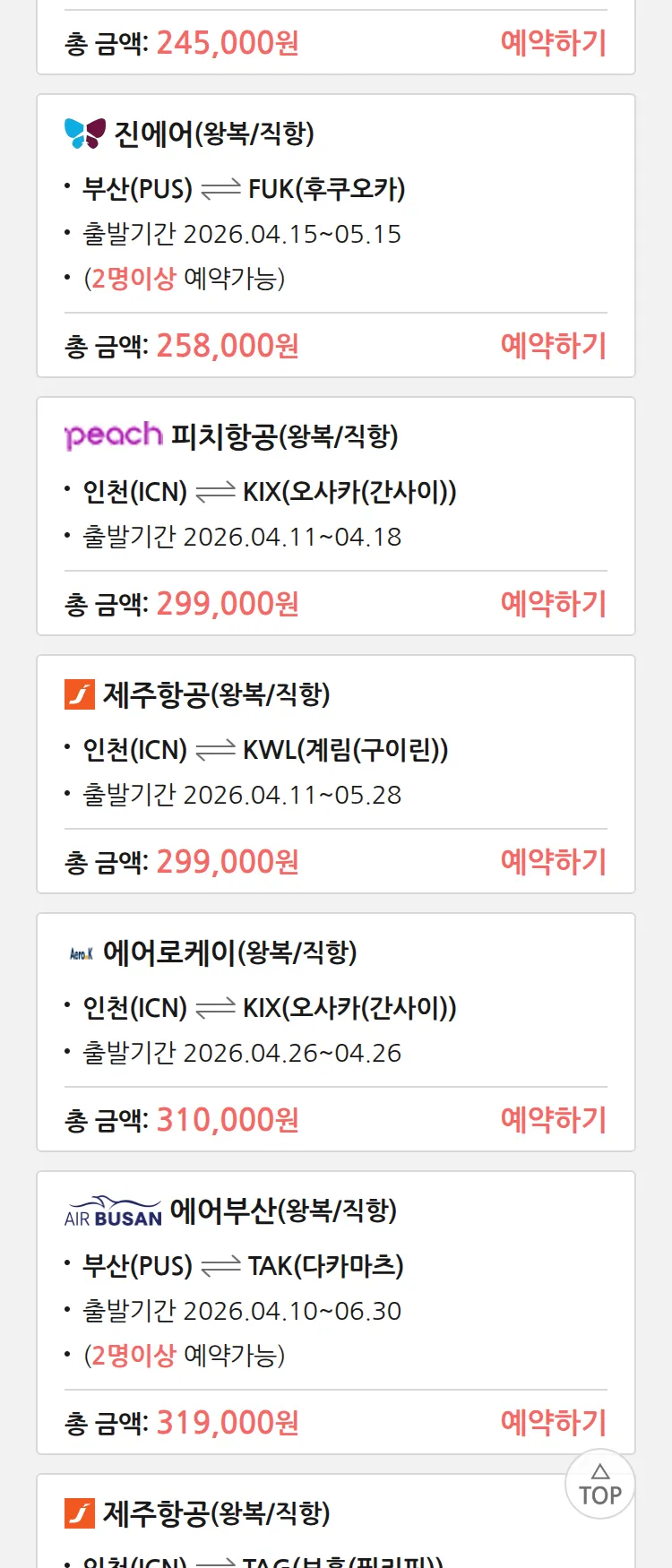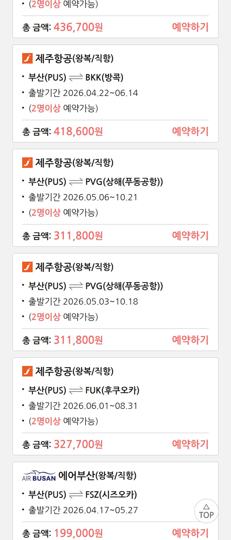 (4월6일(월)) 땡처리 99.9% 확정 패키지