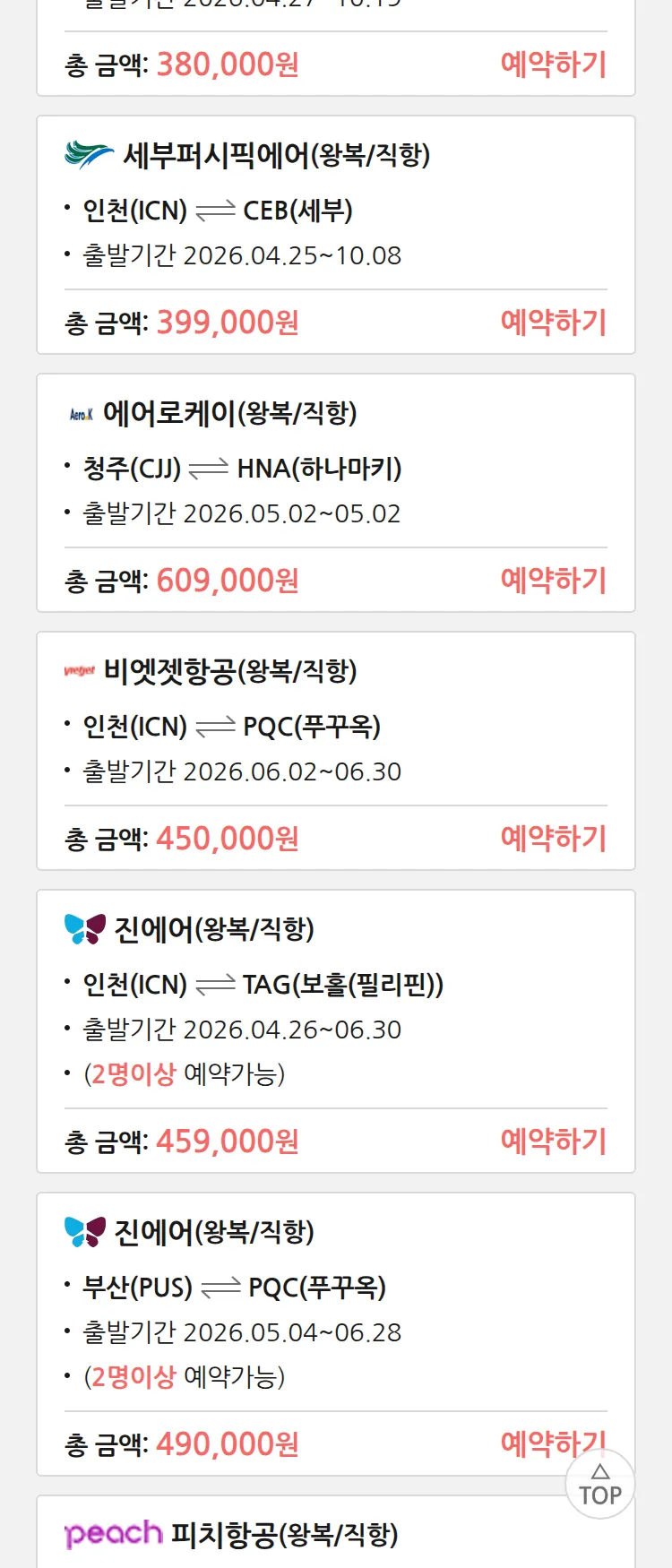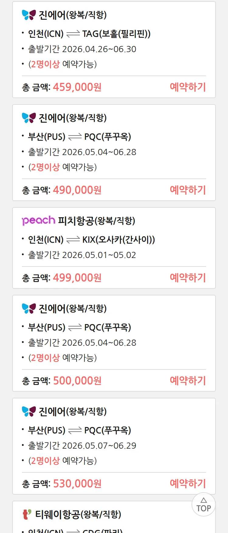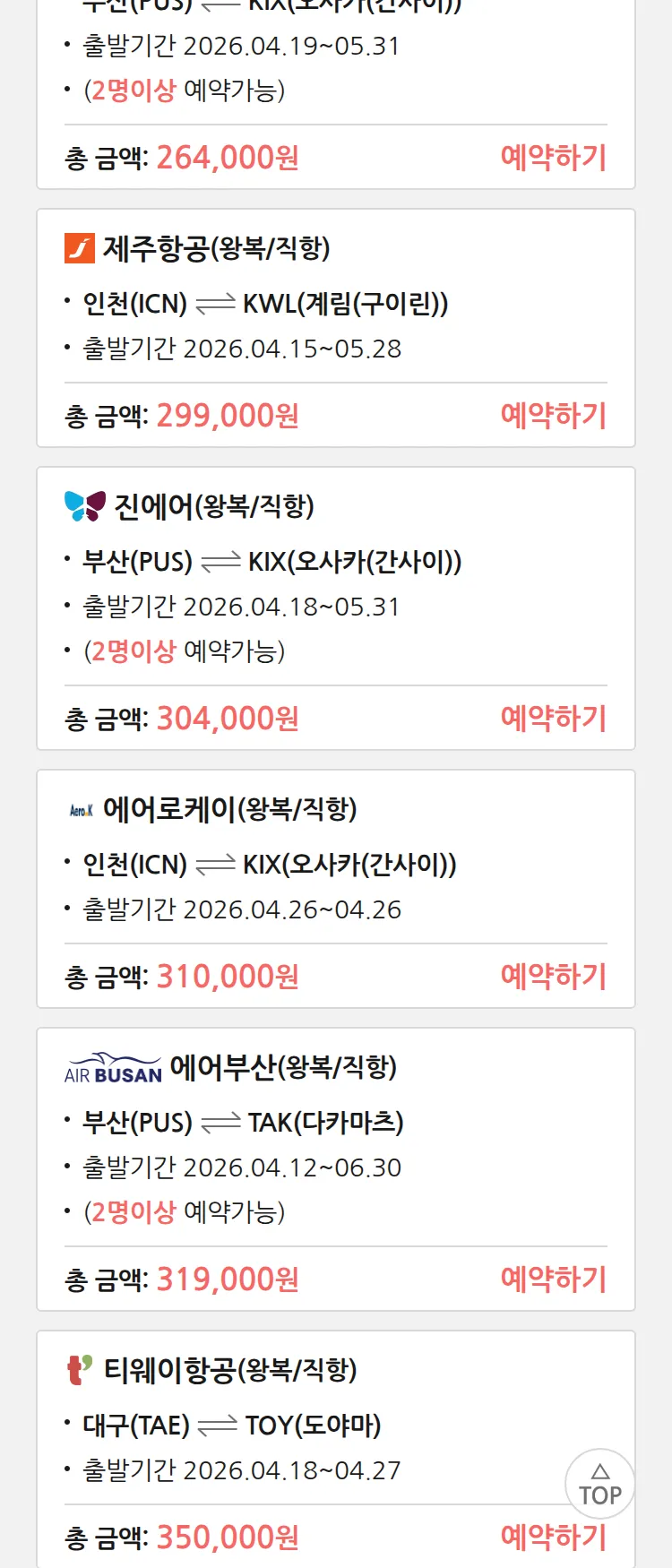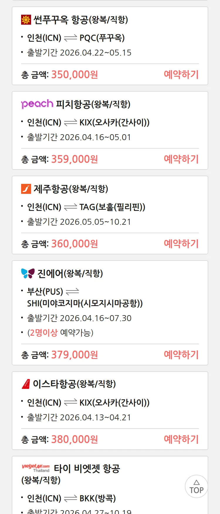 (4월6일(월)) 땡처리 특가 항공권