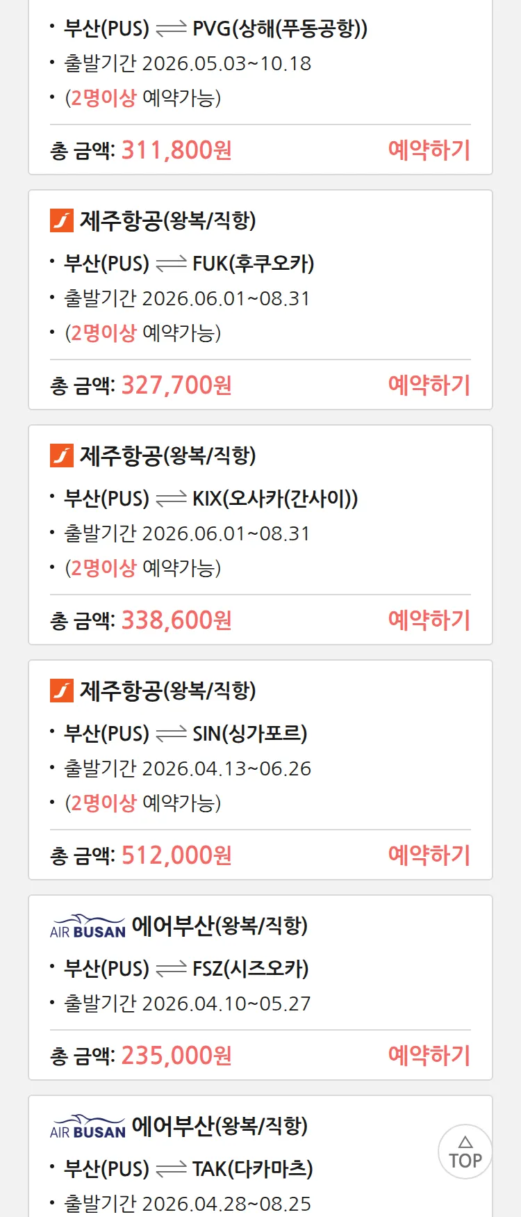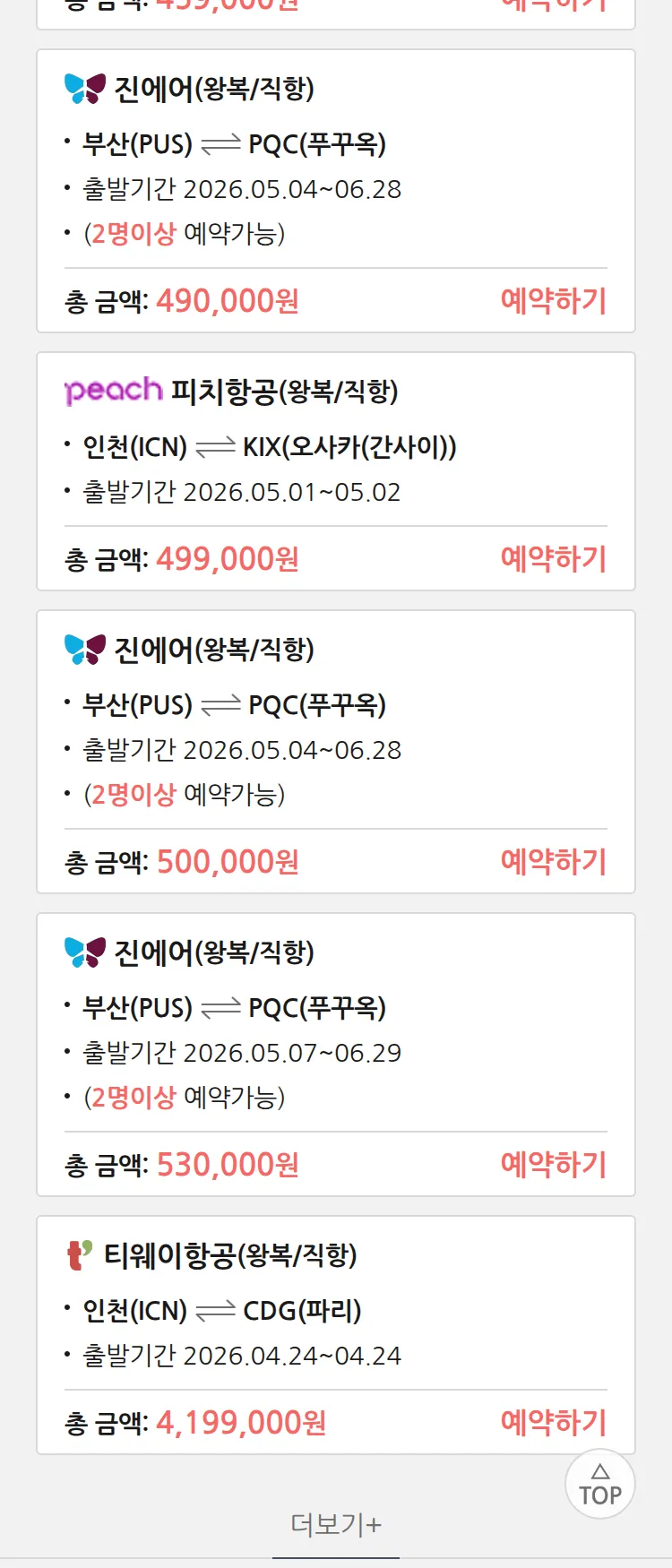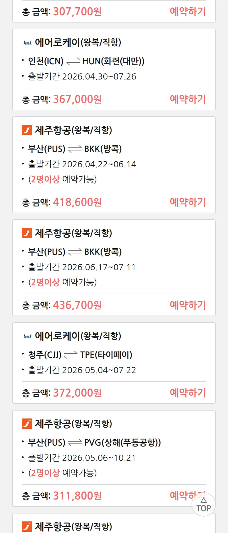 (4월6일(월)) 땡처리 99.9% 확정 패키지
