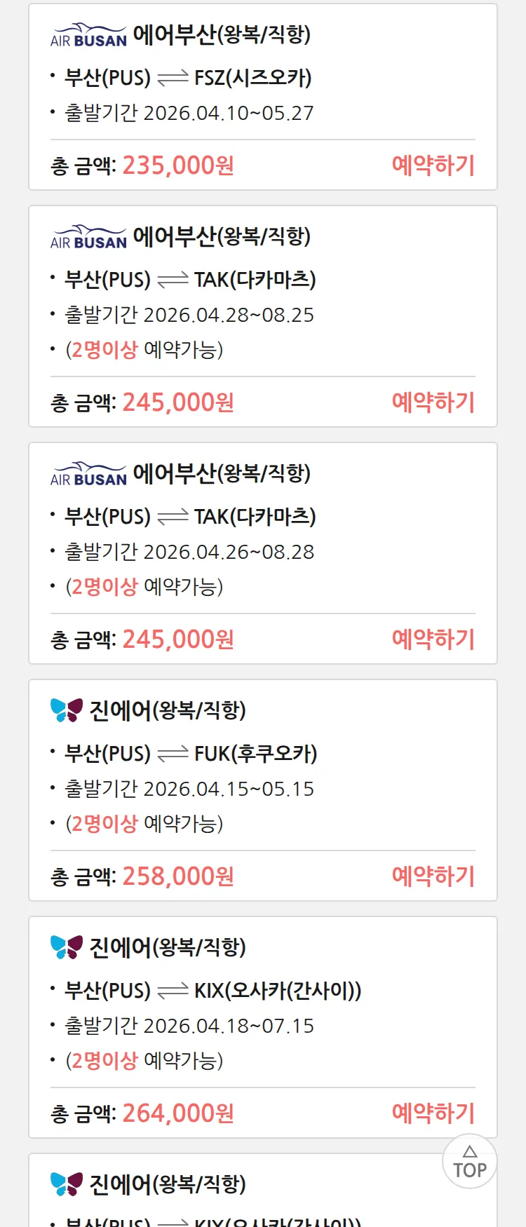 (4월5일(일)) 땡처리 99.9% 확정 패키지