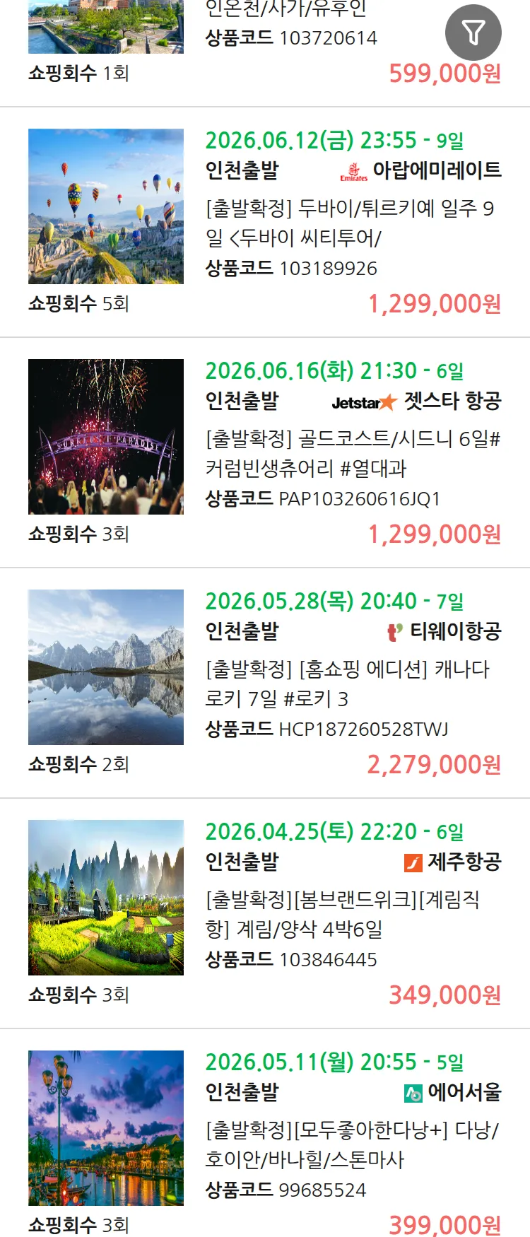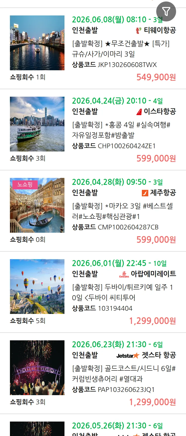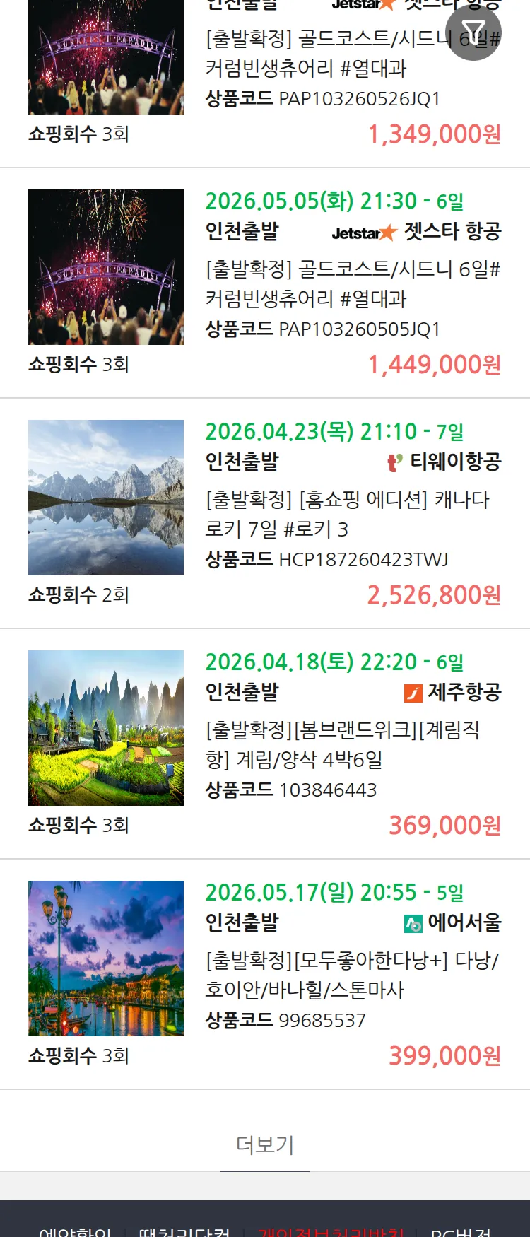 (4월6일(월)) 땡처리 99.9% 확정 패키지