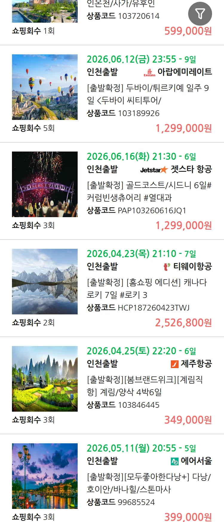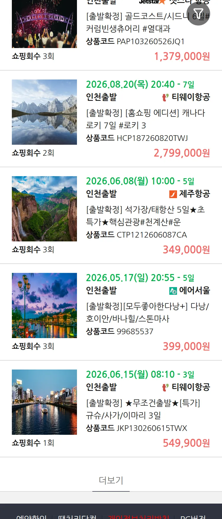 (4월8일(수)) 땡처리 99.9% 확정 패키지