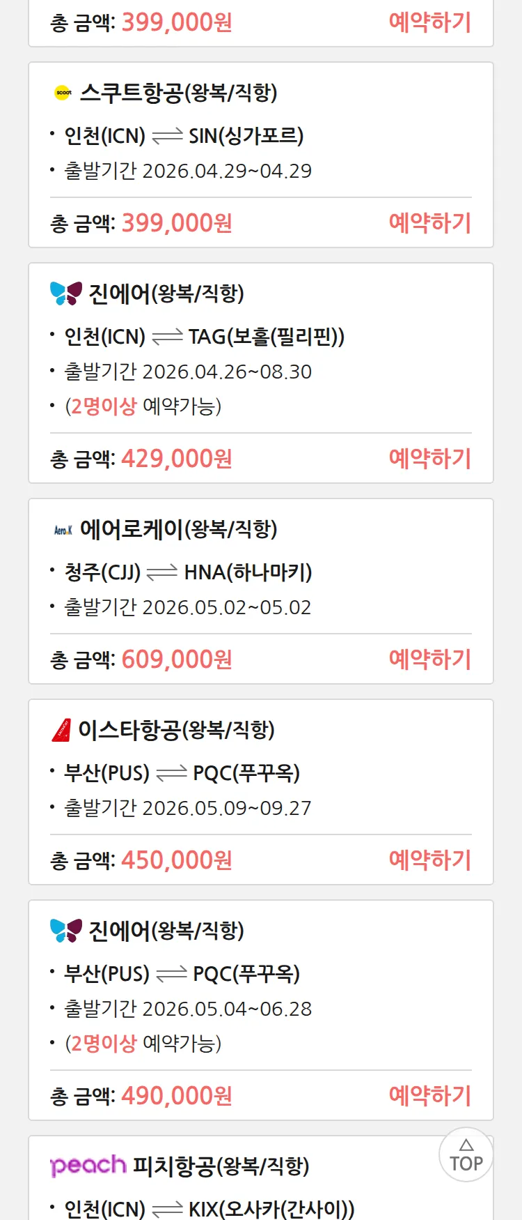 (4월9일(목)) 땡처리 특가 항공권