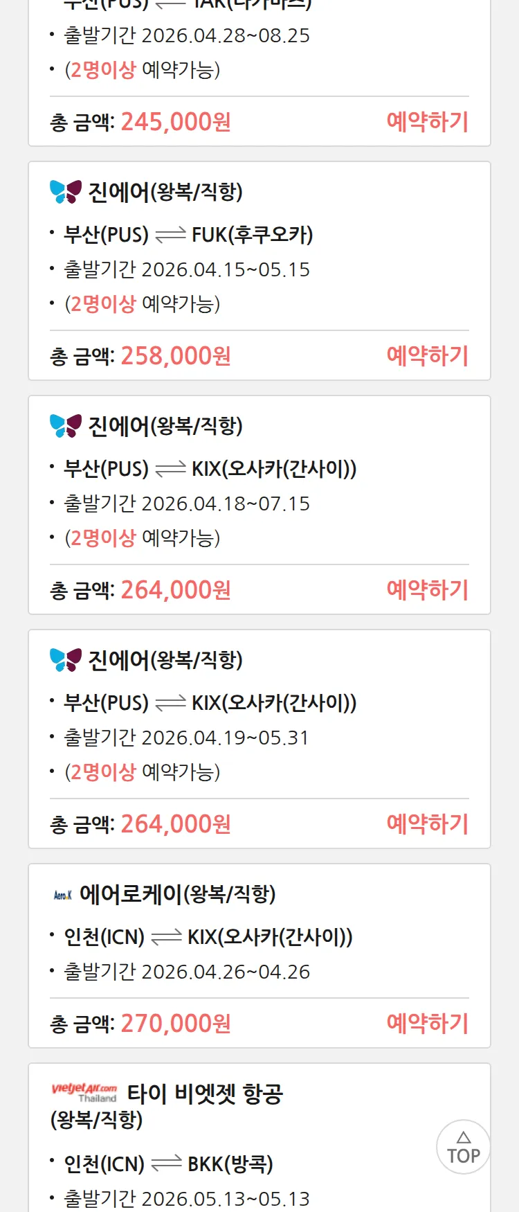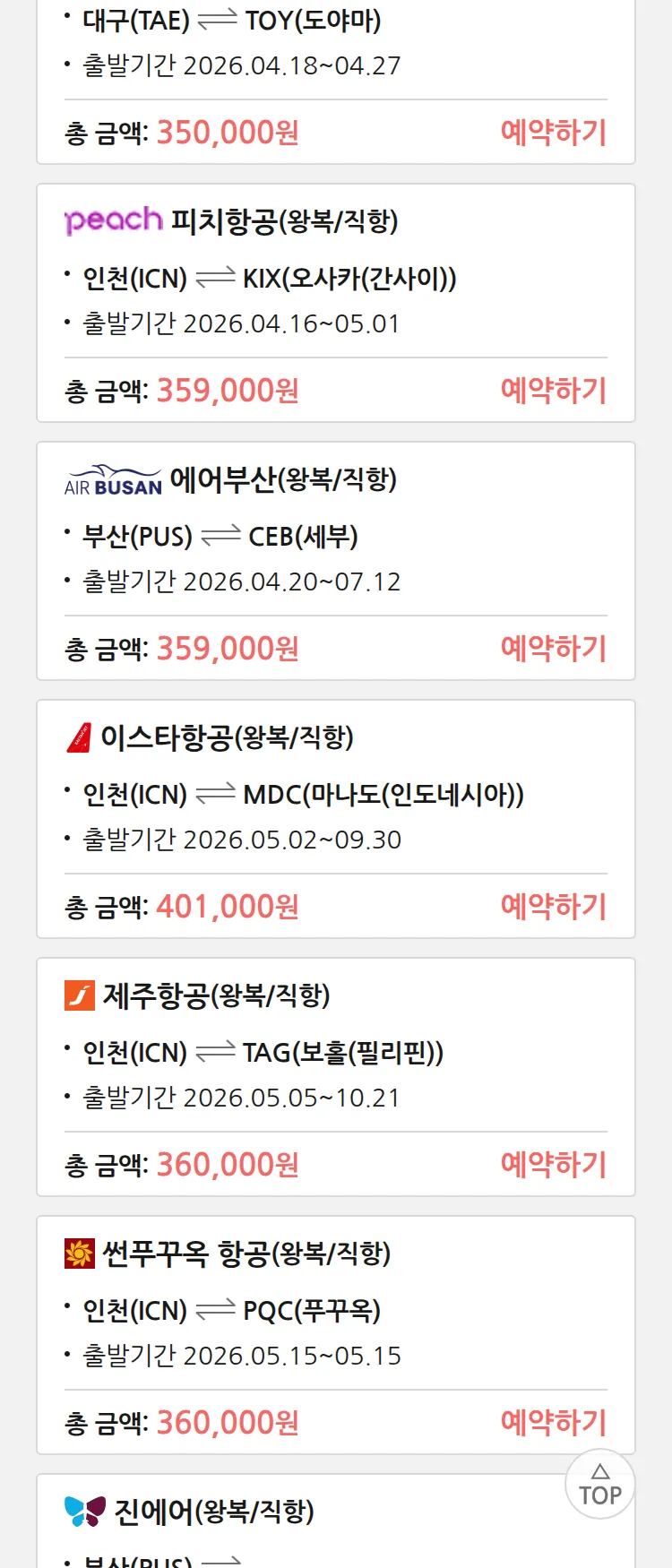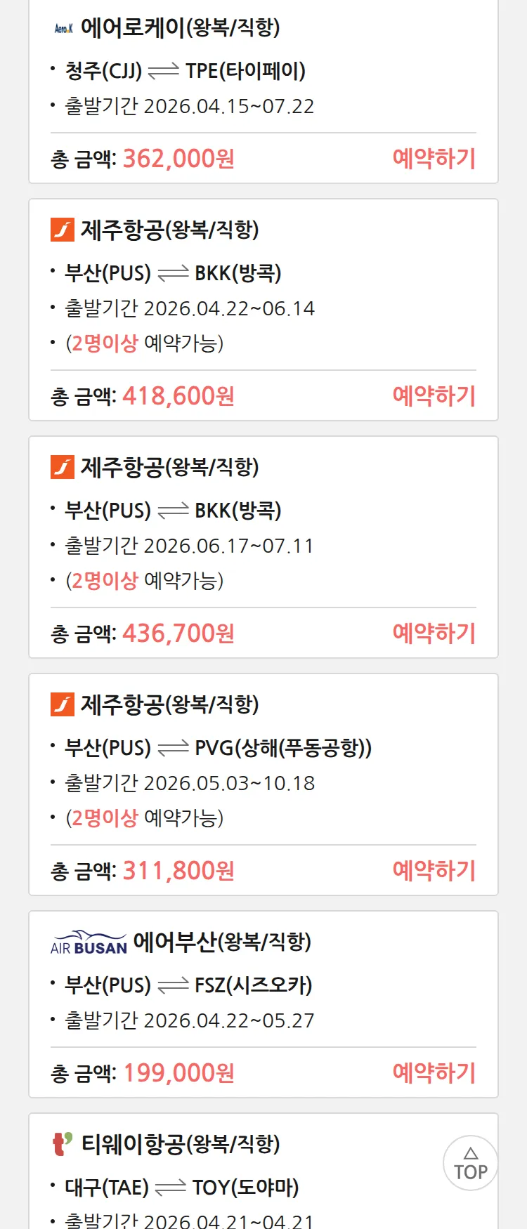 (4월8일(수)) 땡처리 특가 항공권