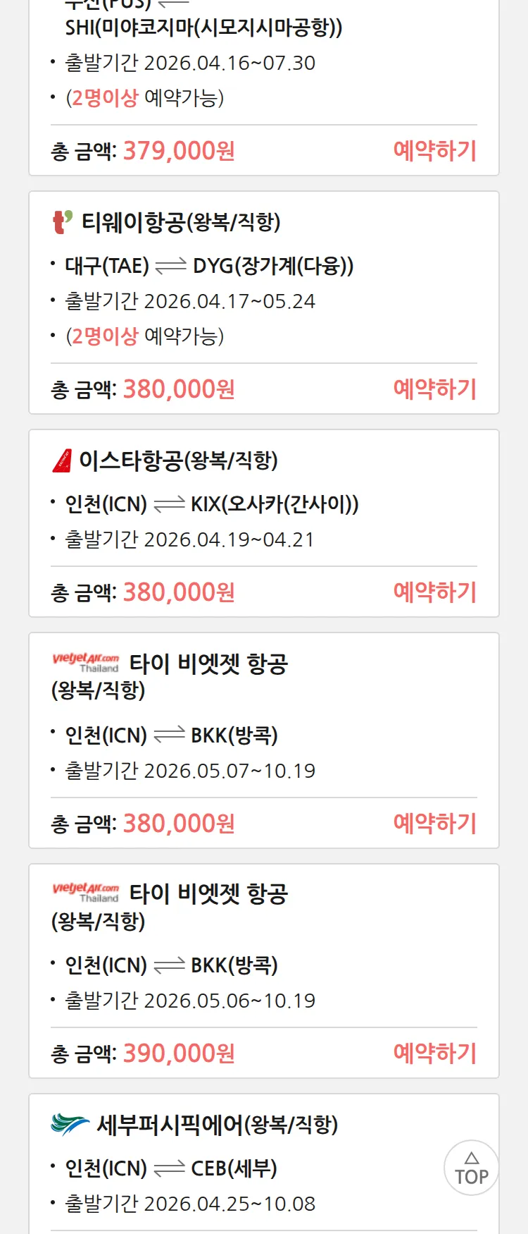 (4월7일(화)) 땡처리 특가 항공권