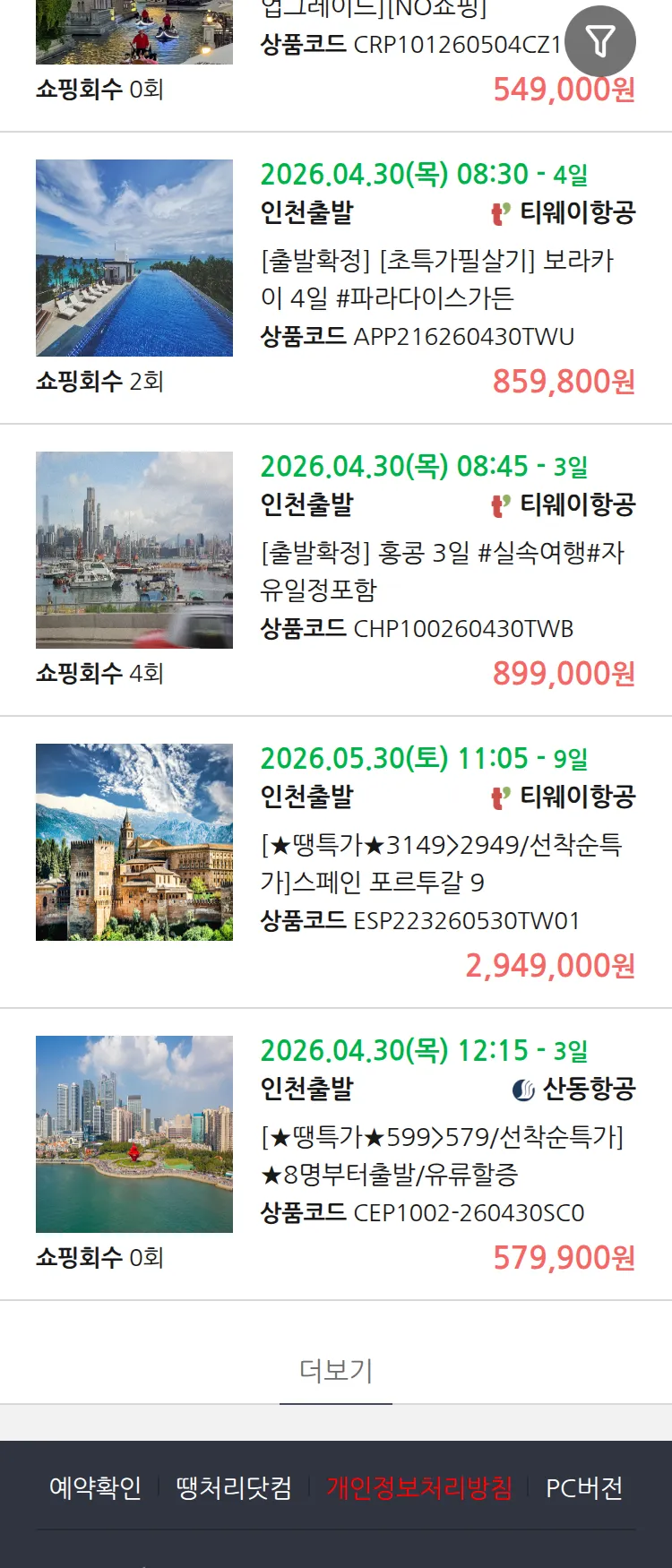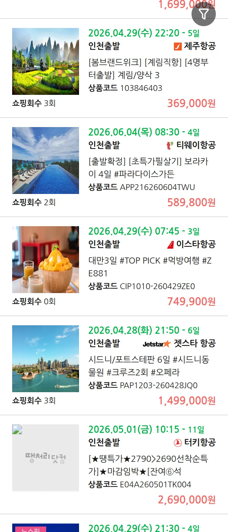 (4월 10일(금)) 땡처리 99.9% 확정 패키지