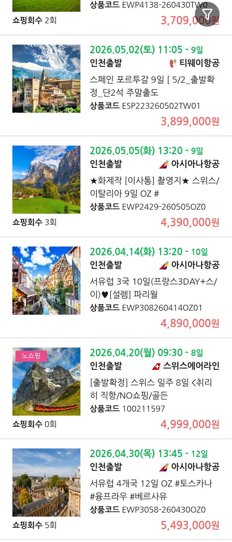 (4월9일(목)) 땡처리 유럽 긴급 패키지