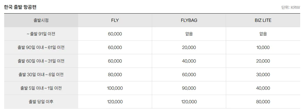 - 출발일 기준 91일 이전 환불하는 최초 한국 출발 국제선 항공권 (해외 출발 항공권 제외)