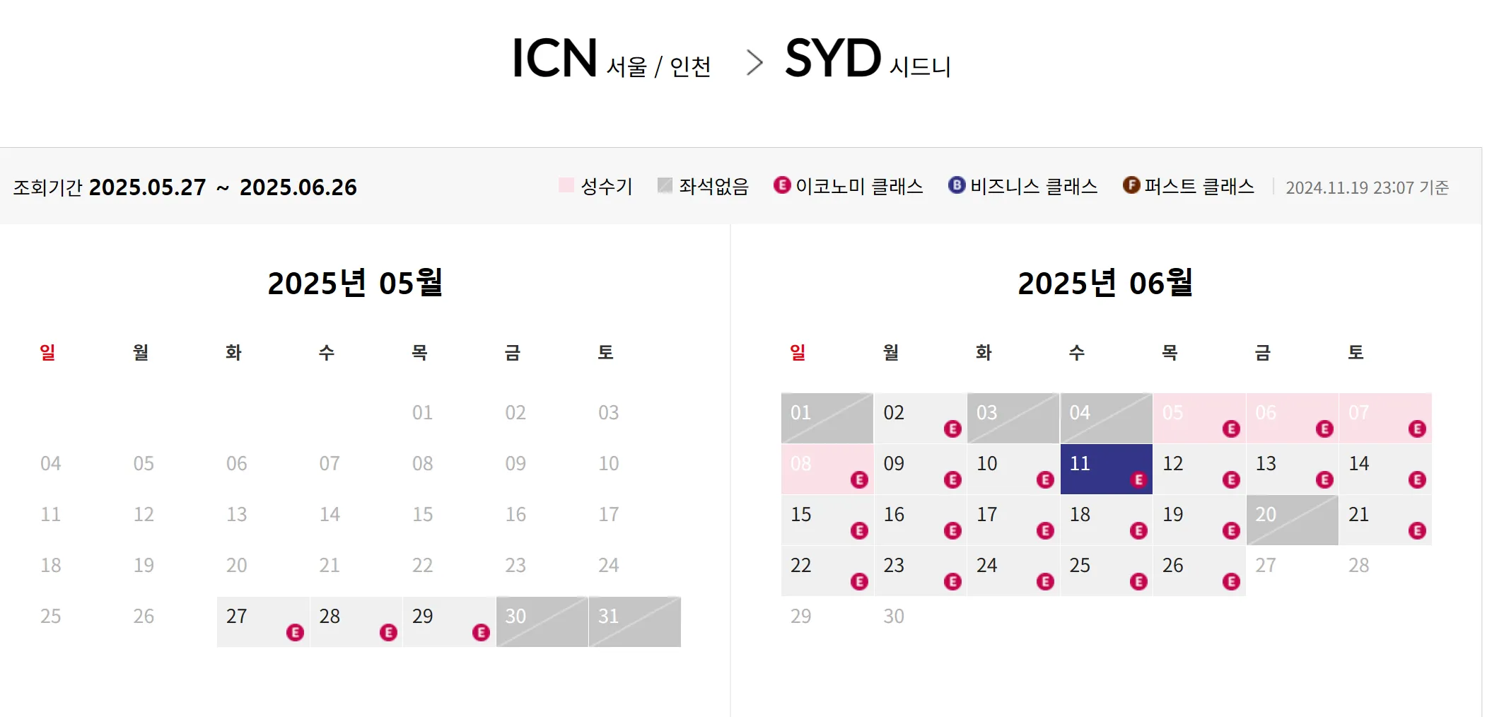 아시아나를 포함해서 스얼 노선에서도 이코노미석은 보너스 좌석들이 많이 남아 있습니다.