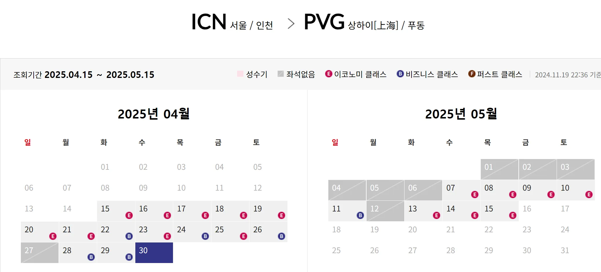 ▼ 중국 상해는 내년 4~5월 황금 연휴에 출발 아시아나 보너스 항공권에 여유가 있음