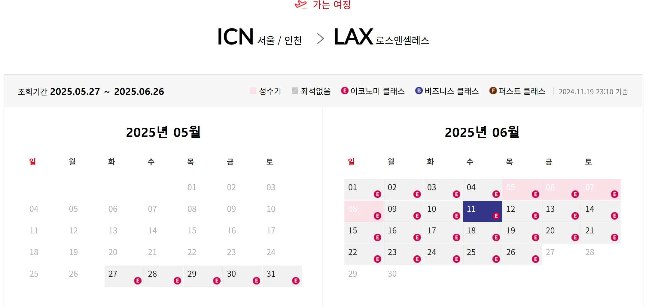 [마일발권]'25년 9월~10월 연휴 스얼 잔여 좌석(ICN ↔ SFO)