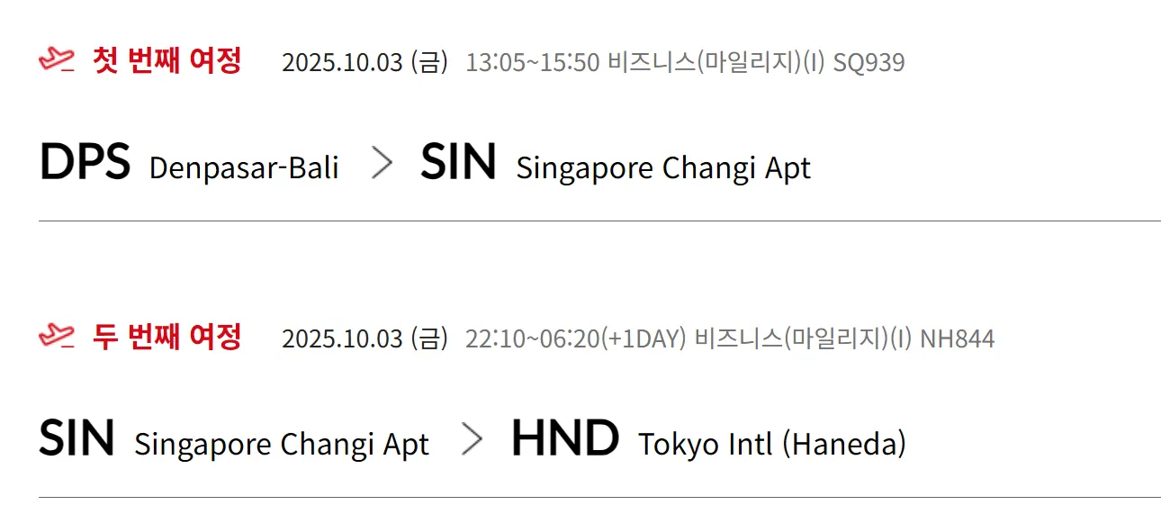▶ ③ 발리(DPS) → 싱가포르(SIN) → 하네다(HND) : 17 시간