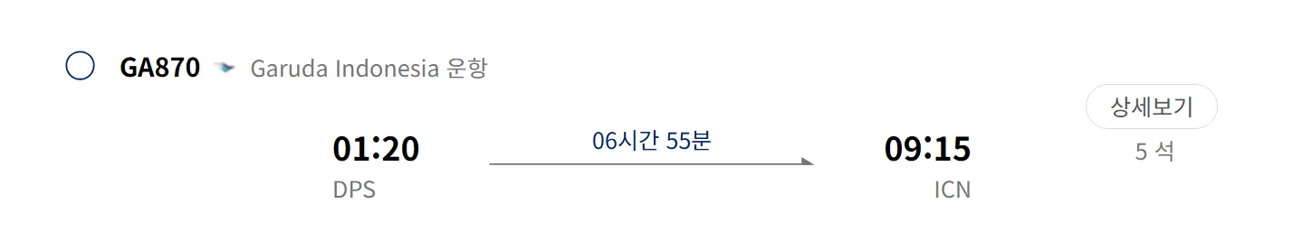 ▶ 직항은 대한항공 4석 및 가루다항공 5석, 경유는 최대 7석까지 비즈 좌석 예약이 가능합니다.