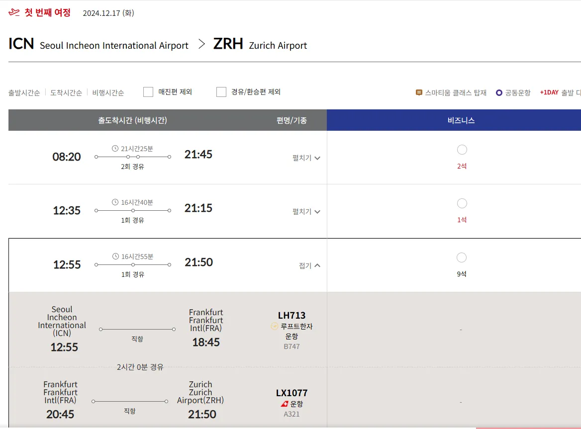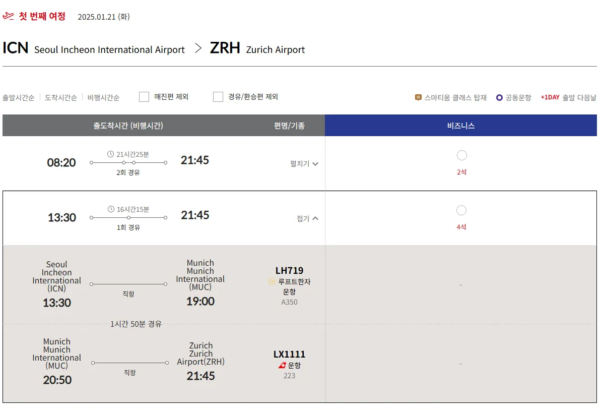 루프트한자은 뮌헨(MUC), 프랑크푸르트(FRA) 일부 가능합니다.